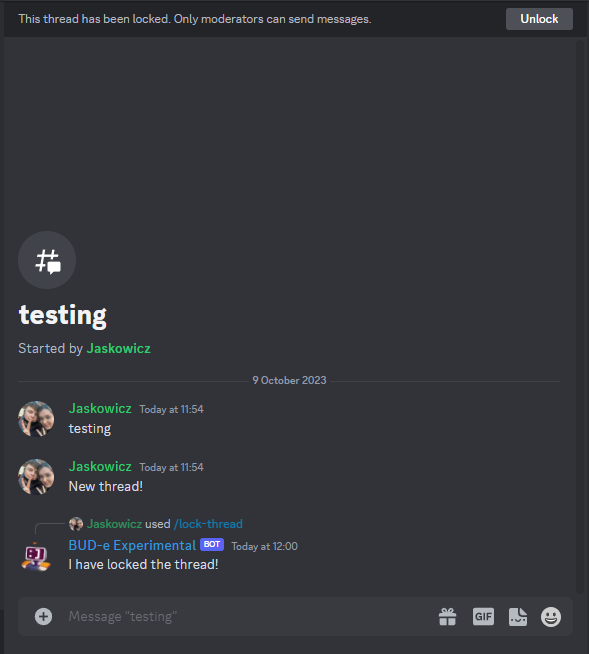 Those of you who are familar with sending messages in regular channels may have also noticed that sending messages to threads is the same as sending a general message. This is because threads are basically channels with a couple more features!